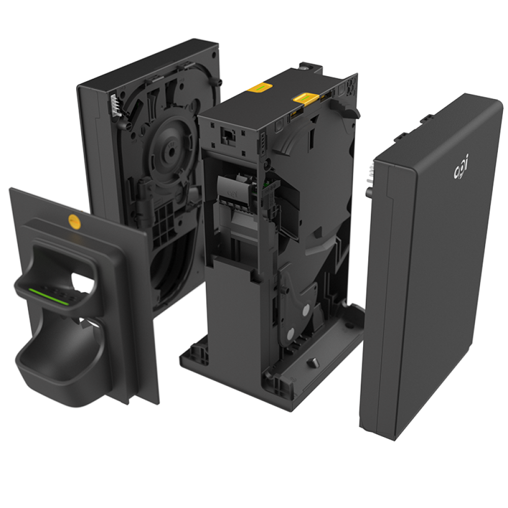 Kompaktowe wymiary Jego smukły/ elegancki profil ma zdejmowaną ramkę zgodną z ADA i został zaprojektowany z myślą o optymalizacji przestrzeni w każdym systemie. Można go łatwo ustawić obok recyklera banknotów BNR firmy CPI, co pozwala klientom budować mniejsze systemy i optymalizować przestrzeń w szafie.