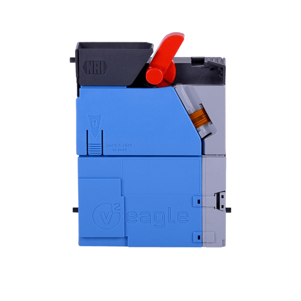 Walidator monet NRI v² eagle™ wyznacza standardy dzięki wysokiemu poziomowi bezpieczeństwa i niezwykle elastycznej architekturze. Ten 5-calowy akceptor monet oferuje walidację MFT (Multi-Frequency Technology) zapewniającą najwyższy dostępny poziom bezpieczeństwa monet. Dzięki różnym opcjom wprowadzania i sortowania monet jest to nasze najbardziej elastyczne rozwiązanie. Czujnik zapobiegający zacinaniu się, umożliwiający szybkie wprowadzanie monet, sprawia, że jest to idealne urządzenie do szerokiej gamy zastosowań, w których ważna jest szybkość.